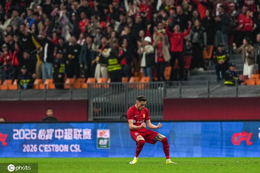 第26分钟,罗慕洛直塞找韦林顿·席尔瓦,阮奇龙从身后有明显拉拽犯规动作,阮奇龙染黄并送出点球。第29分钟,韦世豪操刀骗过对方门将姚浩洋,右脚打球门左侧得手,韦世豪欣赛季联赛首球帮助成都蓉城队1-0领先。